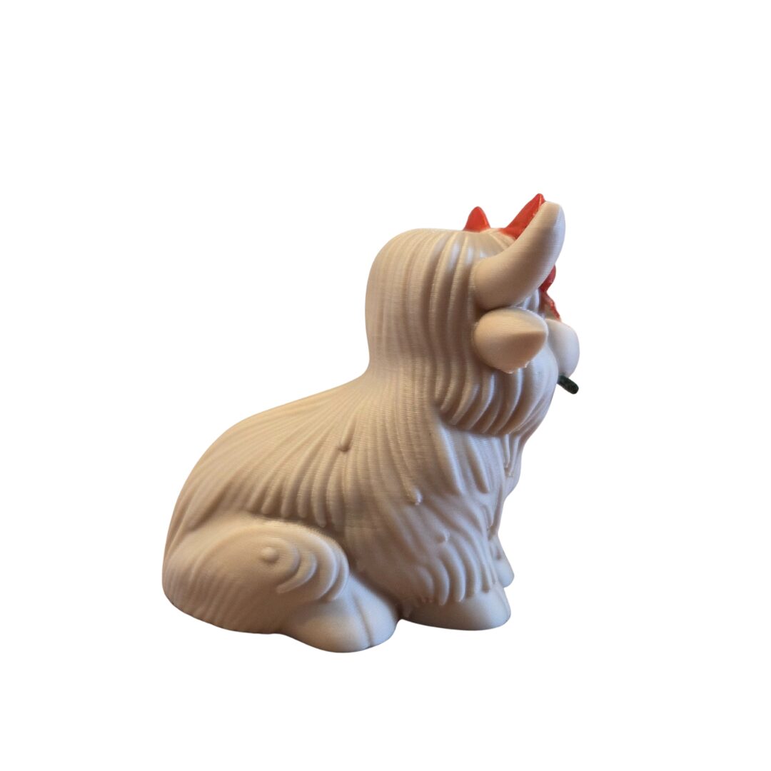 Táto valentínska kravička je malý, rozkošný symbol nežnosti a radosti. So svojím typickým huňatým vzhľadom, ružou v papuľke a milým uzlíkom na čele pôsobí hravo, láskavo a okamžite si získa srdce každého, kto ju uvidí.