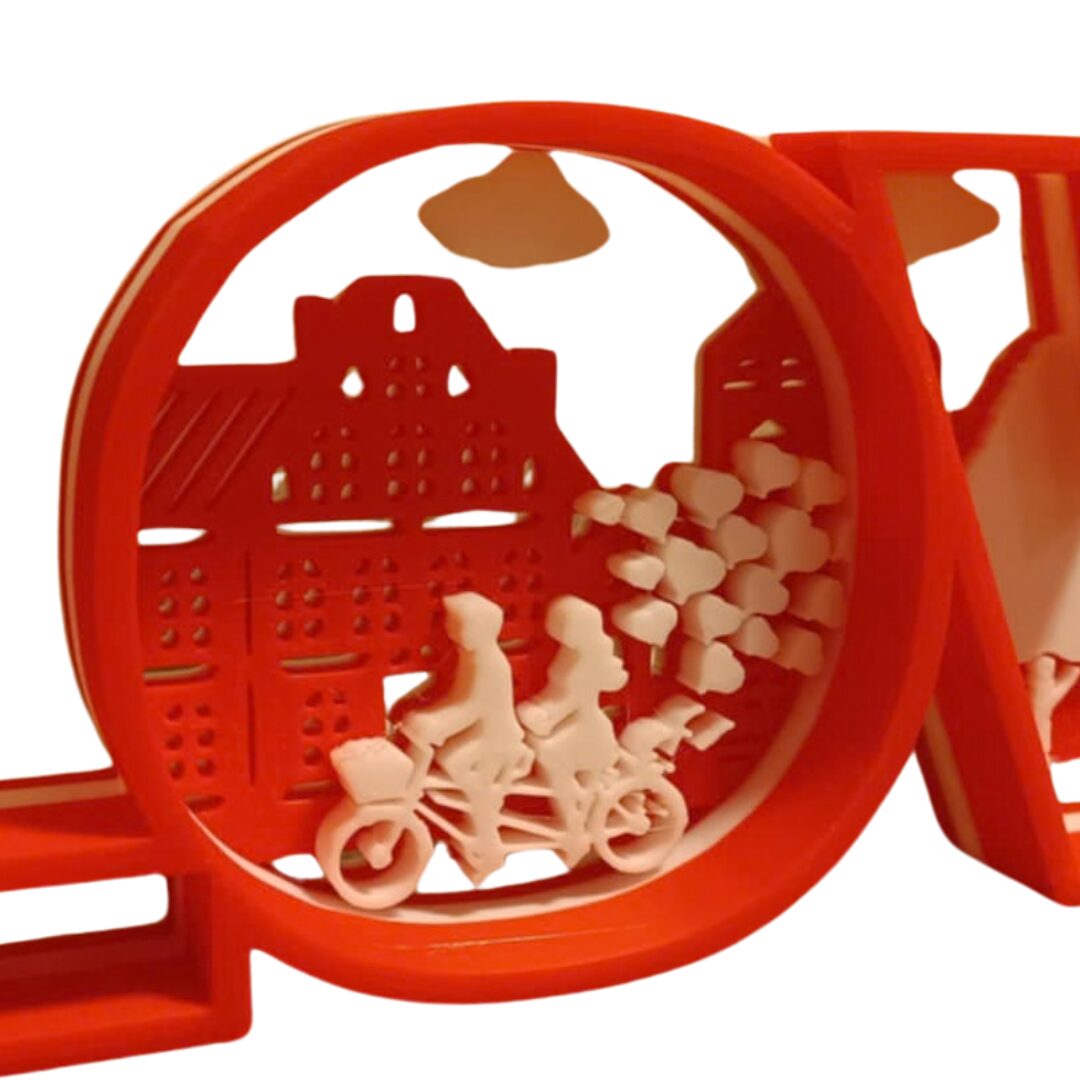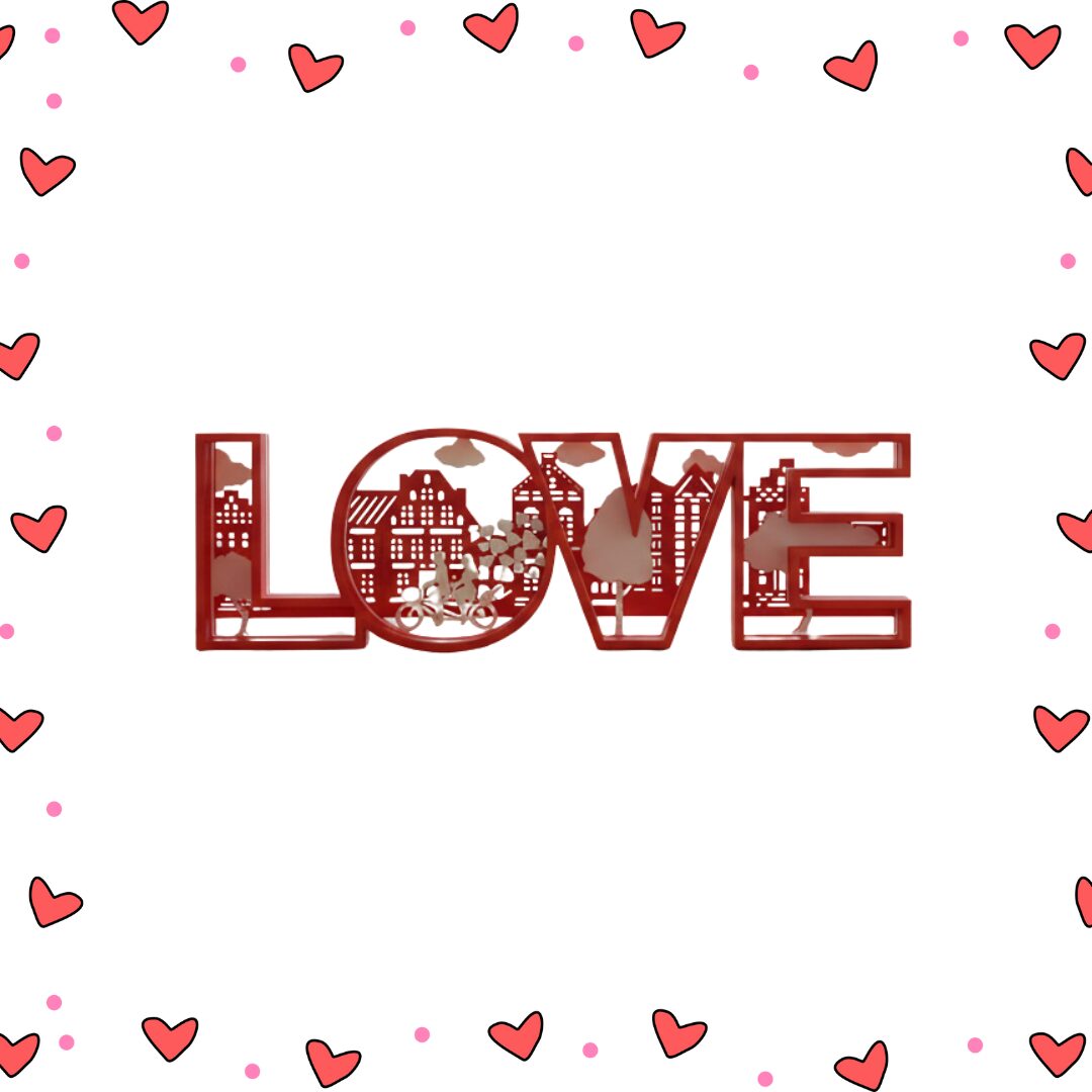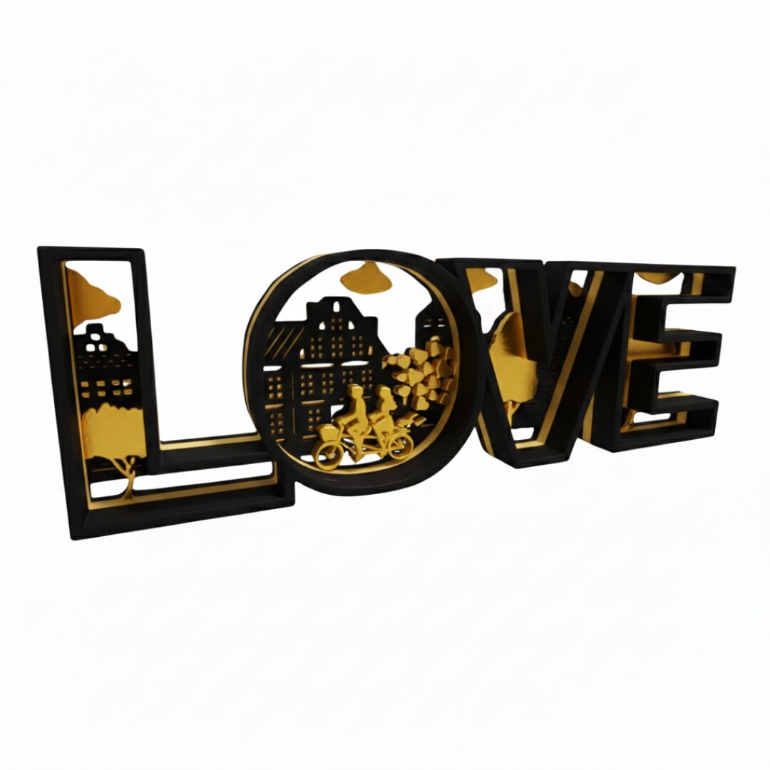 Vo vnútri nápisu sa nachádza jemná 3D scéna s romantickým motívom, ktorá symbolizuje lásku, blízkosť a spoločné chvíle. Skvele sa hodí do obývačky, spálne, pracovne alebo ako dekorácia na svadby, výročia či Valentínske prekvapenie.