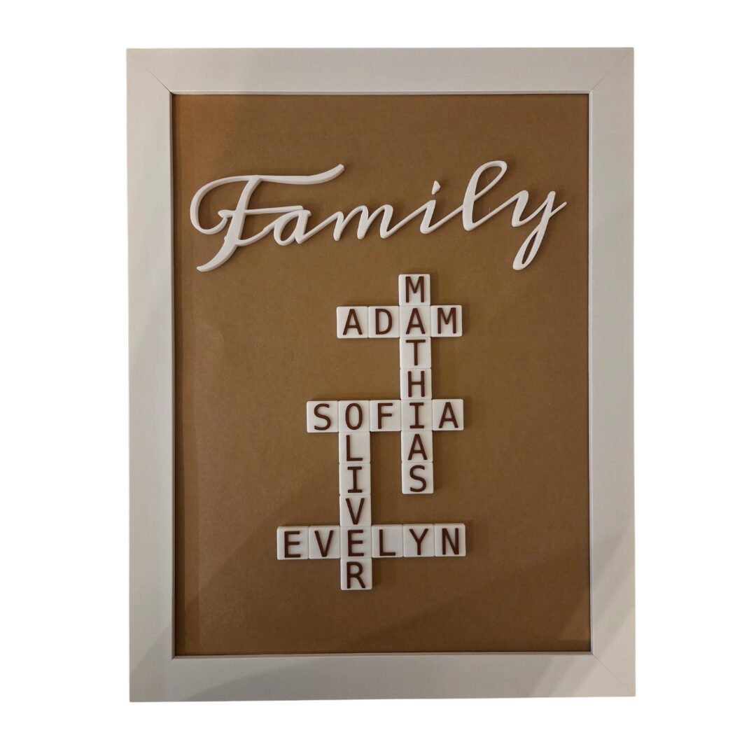 Tento personalizovaný rodinný krížovkový obraz