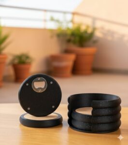 Na prvý pohľad ide o moderné podložky pod poháre, ktoré chránia stôl pred škvrnami, no ukrývajú aj praktické prekvapenie – zabudovaný otvárač na fľaše.