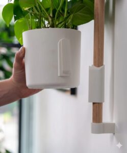 Kontrast svetlého dreva a matnej bielej farby vytvára čistý, „plávajúci“ vizuálny efekt a šetrí priestor. Minimalistický dizajn dopĺňa flexibilitu systému – ak chcete kombinovať tento systém s inými kvetináčmi z našej ponuky, kontaktujte nás e-mailom alebo telefonicky a pripravíme vám riešenie.
