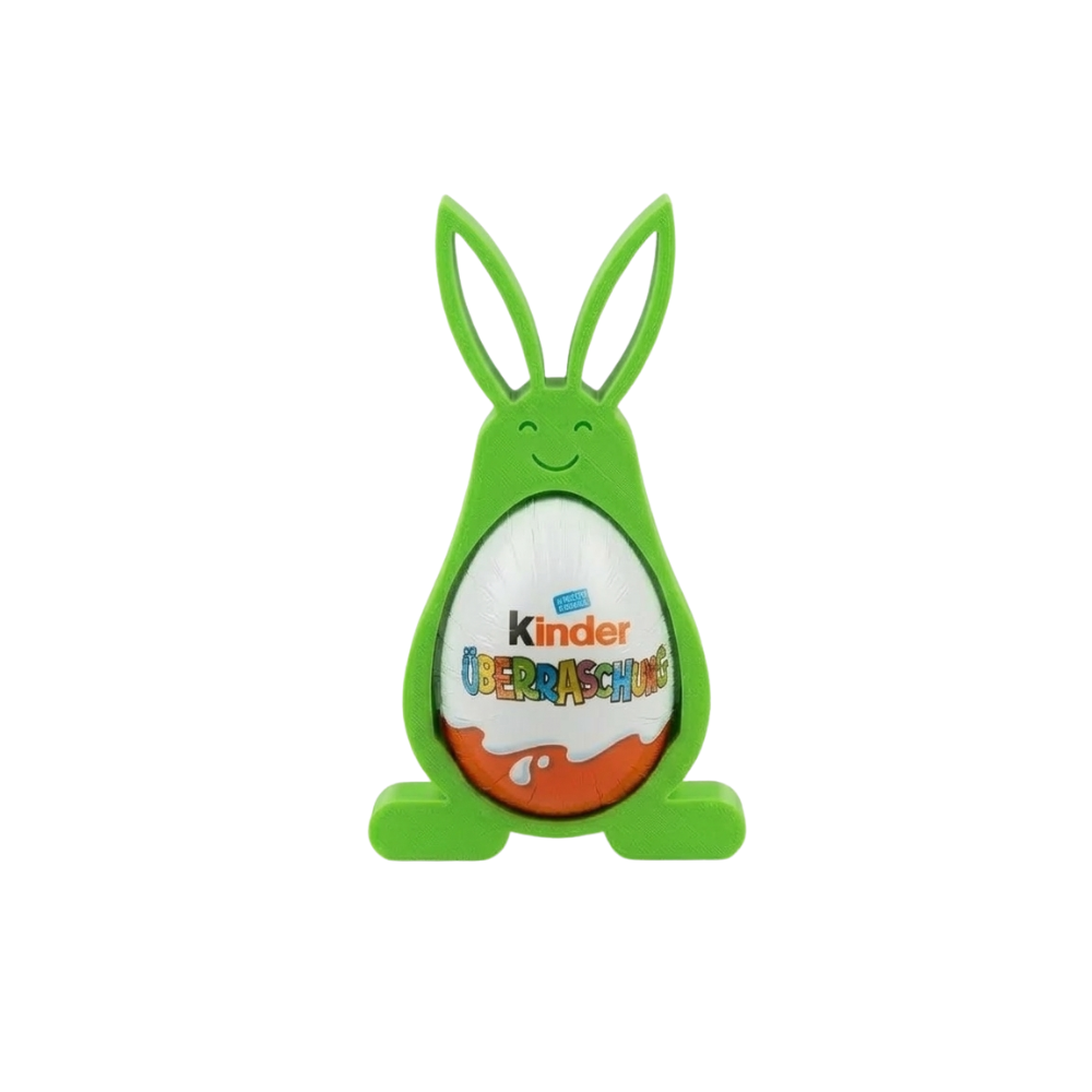 - Praktický úchyt: Špeciálne navrhnutý stredový výrez bezpečne udrží vajíčko typu Kinder Surprise, ktoré zároveň dotvára bruško zajaca.