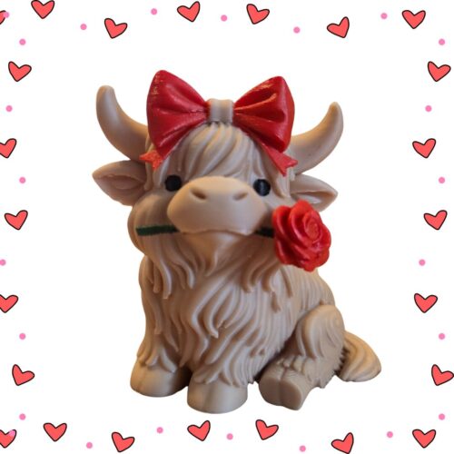 3D dekorácia „Valentínková Vysokohorská Kravička s Ružou“ – handpainted